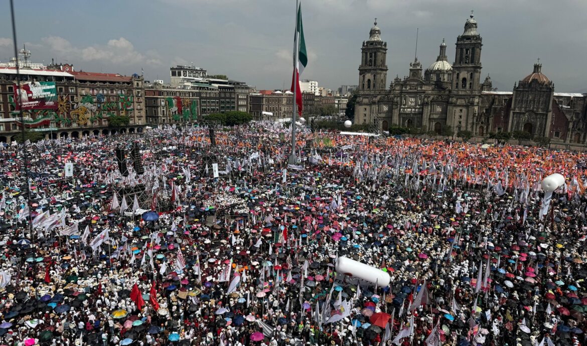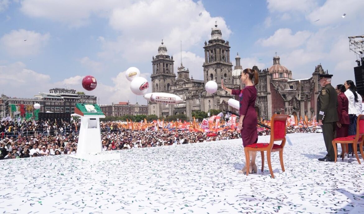 Sheinbaum llena el Zócalo y promete no fallarle al pueblo