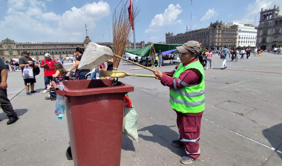 Gobierno capitalino limpia el Zócalo tras plantón de la CNTE: retiran 87 m³ de basura